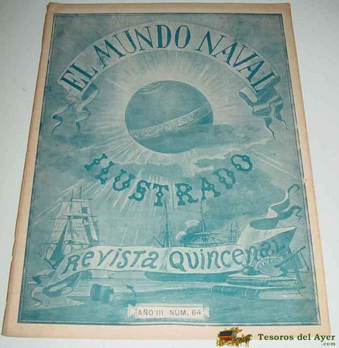 DE LA IMPORTANTE REVISTA QUINCENAL "EL MUNDO NAVAL ILUSTRADO", DIRIGIDO POR DON PEDRO NOVO Y COLSON. LA PORTADA ESTá ILUSTRADA POR UNA SOBERBIA REPRODUCCIóN FOTOGRáFICA DE D. S.M. LA REINA VICTORIA DE INGLATERRA, LA CORBETA ZARAGOZA FONDEADA EN EL PUERTO DE VERACRUZ, EL ACORAZADO CENTURION, UN TRASATLANTICO CONDUCIENDO REPATRIADOS ESPAÑOLES DE FILIPINAS, EL CONTENIDO DE ESTA REVISTA ES IMPRESIONANTE, TANTO EN ARTíCULOS REFERIDOS AL MUNDO NAVAL COMO A LAS REPRODUCCIONES FOTOGRáFICAS DE PERSONAJES LIGADOS A ESTA PARCELA. EL NúMERO ESTá COMPLETO Y CONSTA DE 24 PáGINAS Y FORMATO DE 26 X 37 CM.