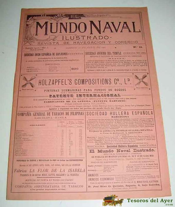 REVISTA EL MUNDO NAVAL ILUSTRADO (MADRID, 3O DE ABRIL 1900) - EJEMPLAR NúMERO 11 SEGUNDA EPOCA, DE LA IMPORTANTE REVISTA QUINCENAL "EL MUNDO NAVAL ILUSTRADO", DIRIGIDO POR DON PEDRO NOVO Y COLSON. MUCHISIMAS FOTOGRAFIAS E ILUSTRACIONES DE D. D. FRANCISCO SILVELA, LANZAMIENTO DEL CRUCERO EXTREMADURA, EL SUBMARINO FUSTAVO ZEDE, EL ACORAZADO ITALIANO REGINA MARGHERITA, EL ACORAZADO DE SEGUNDA CLASE D ASSAS, LA ESCUADRA FRANCESA DEL MEDITERRANEO, LLEGADA DEL CRUCERO POWERFUL, EL CRUCERO RUSO ASKOLD, D. PABLO DE ALZOLA, EL CONTENIDO DE ESTA REVISTA ES IMPRESIONANTE, TANTO EN ARTíCULOS REFERIDOS AL MUNDO NAVAL COMO A LAS REPRODUCCIONES FOTOGRáFICAS DE PERSONAJES LIGADOS A ESTA PARCELA. EL NúMERO ESTá COMPLETO Y CONSTA DE 18 PáGINAS Y FORMATO DE 26 X 37 CM.