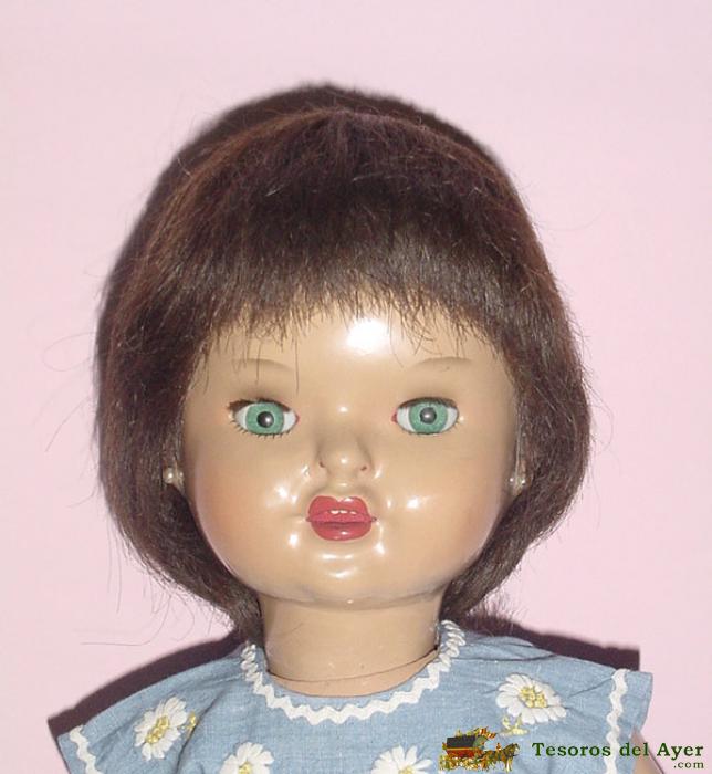 MAGNÍFICA MUÑECA PATRICIA DE LA CASA FLORIDO, ESPAÑA AÑOS 50, REALIZADA EN CARTÓN PIEDRA PINTADA AL DUCO-CABELLO NATURAL-OJO DURMIENTE COLOR VERDE -CINTURA ARTICULADA-ROPA DE ORIGEN- MIDE 48 CM