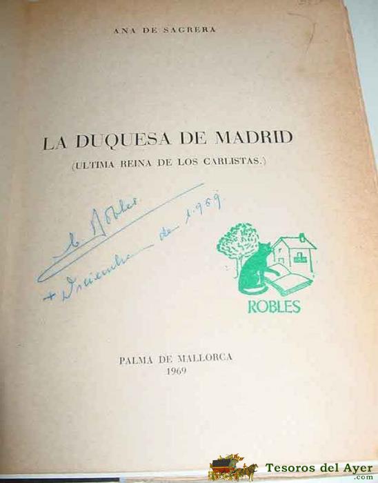 LA DUQUESA DE MADRID - ULTIMA REINA DE LOS CARLISTAS - POR DE SAGRERA, ANA - AñO 1969 - PALMA DE MALLORCA - 586 PP. ILUSTRADO CON NUMEROSAS LáMINAS FUERA DE TEXTO. ADEMáS MAGNíFICOS GRABADOS EN CABECERAS DE CAPíTULOS - FIRMA MANUSCRITA DEL ANTERIOR PROPI
