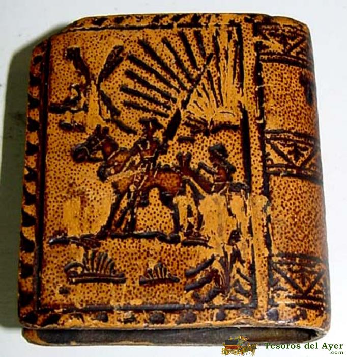 ANTIGUA CAJITA DE PIEL DE DON QUIJOTE DE LA MANCHA, PARA GUARDAR CERILLAS - BUEN ESTADO DE CONSERVACION