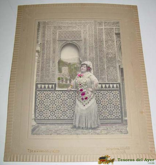 ANTIGUA FOTOGRAFIA COLOREADA COSTUMBRISTA DE GRANADA - MIDE 21,5 X 16 CMS. - CON PASPARTOUT MIDE 30 X 24CMS. - THE OLD CURIOSITY SHOP - ALHAMBRA, 66 Y 68 GRANADA -