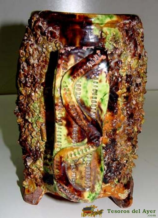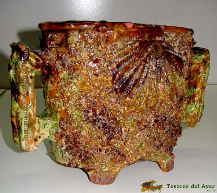 ANTIGUA Y RARA PIEZA DE CERAMICA ESPAÑOLA - NO SE DE DONDE PROCEDE - CON CONCHAS DE SANTIAGO - MIDE 29 X 19 X 14 CMS.
