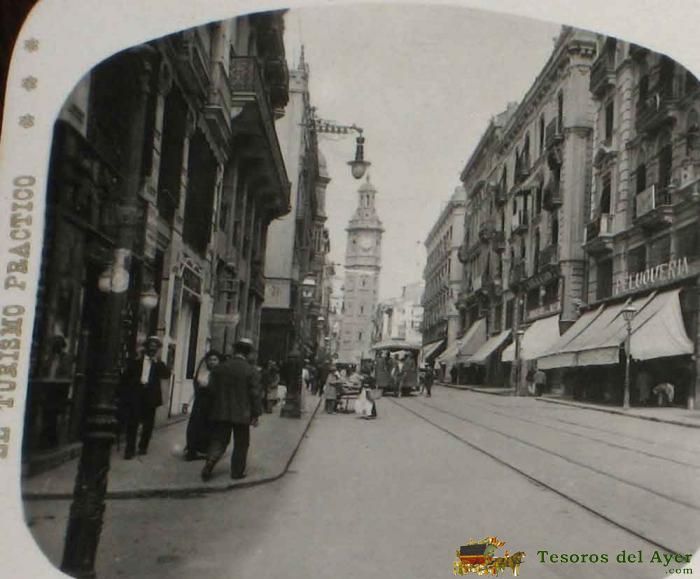 ANTIGUA ESTEREOSCOPIA DE VALENCIA - CALLE DE LA PAZ - N. 7 - ED. EL TURISMO PRACTICO - VISTAS ESTEREOSCOPICAS DE ESPAÑA - MIDE 16,8 X 8,2 CMS.