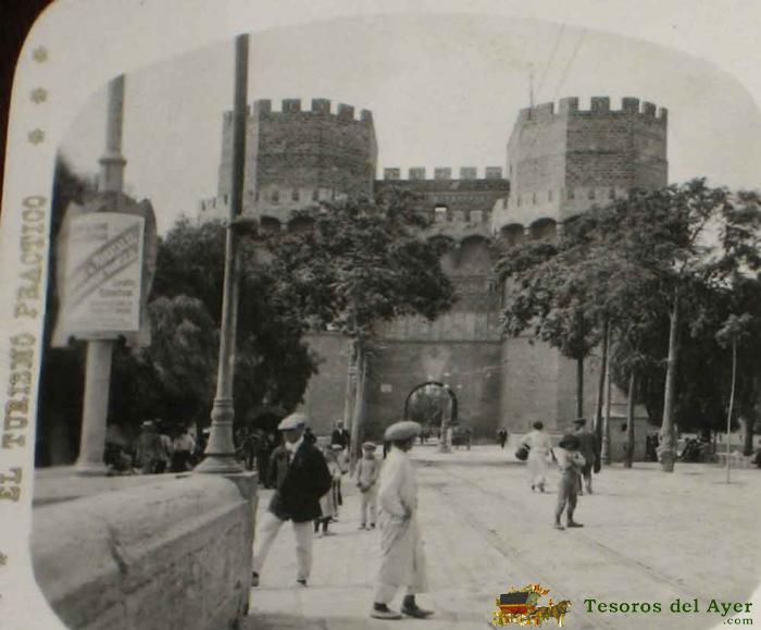 ANTIGUA ESTEREOSCOPIA DE VALENCIA - PUERTA DE SERRANOS - N. 1 - ED. EL TURISMO PRACTICO - VISTAS ESTEREOSCOPICAS DE ESPAÑA - MIDE 16,8 X 8,2 CMS.
