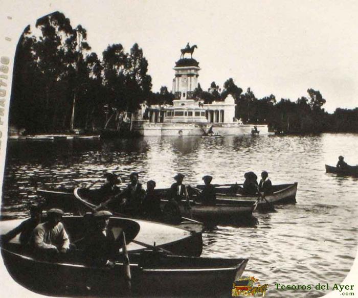 ANTIGUA ESTEREOSCOPIA DE MADRID - ESTANQUE DEL RETIRO - N. 3 - ED. EL TURISMO PRACTICO - VISTAS ESTEREOSCOPICAS DE ESPAÑA - MIDE 16,8 X 8,2 CMS.