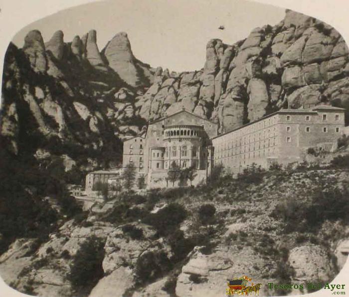 ANTIGUA ESTEREOSCOPIA DE MONTSERRAT - BARCELONA - N. 19 - ED. EL TURISMO PRACTICO - VISTAS ESTEREOSCOPICAS DE ESPAÑA - MIDE 16,8 X 8,2 CMS.