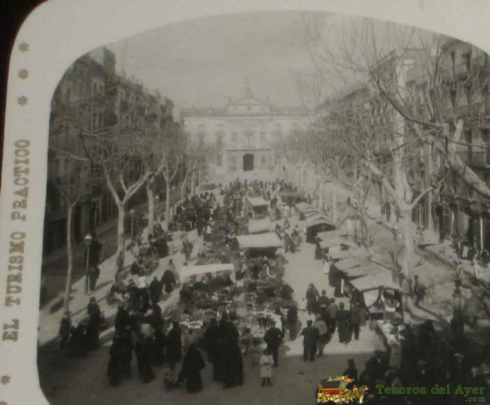 ANTIGUA ESTEREOSCOPIA DE TARRAGONA - PLAZA DE LA CONSTITUCION - N. 6 - EL TURISMO PRACTICO - VISTAS ESTEREOSCOPICAS DE ESPAÑA - MIDE 16,5 X 8 CMS.