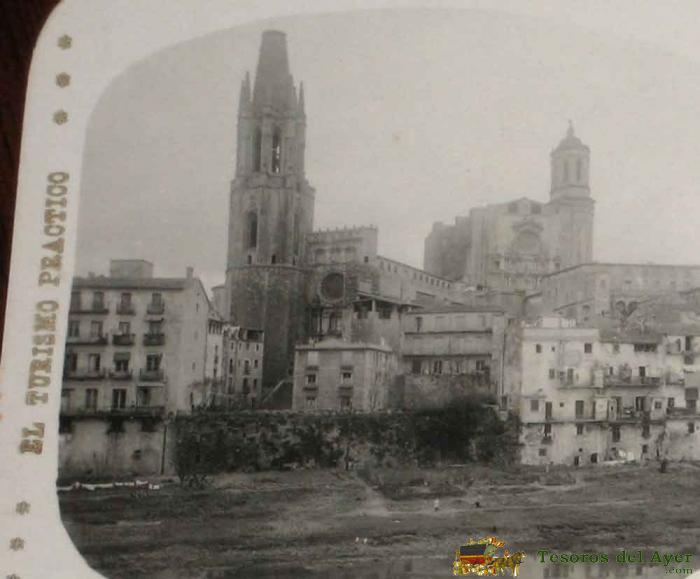 ANTIGUA ESTEREOSCOPIA DE GERONA - N. 1 - VISTA PARCIAL DE LA CIUDAD - VISTAS ESTEREOSCOPICAS DE ESPAÑA - MIDE 16,5 X 8 CMS.