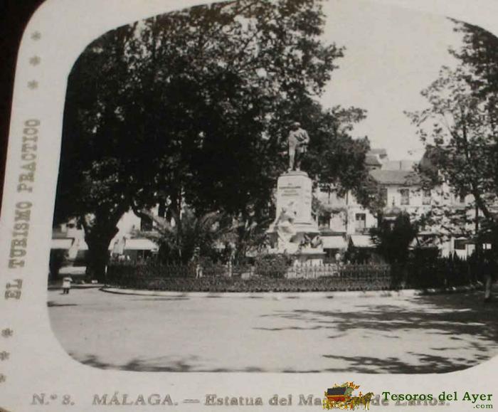 ANTIGUA ESTEREOSCOPIA DE MALAGA - N. 8 - ESTATUA DEL MARQUES DE LARIOS - VISTAS ESTEREOSCOPICAS DE ESPAÑA - MIDE 16,5 X 8 CMS.