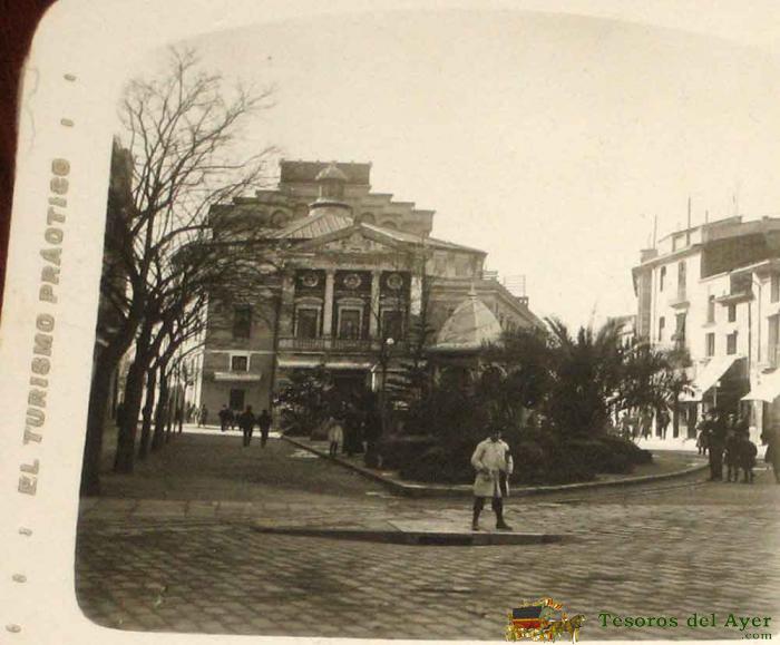 ANTIGUA ESTEREOSCOPIA DE CASTELLON - PLAZA DE LA PAZ - N. 4 - EL TURISMO PRACTICO - VISTAS ESTEREOSCOPICAS DE ESPAÑA - MIDE 16,5 X 8 CMS.