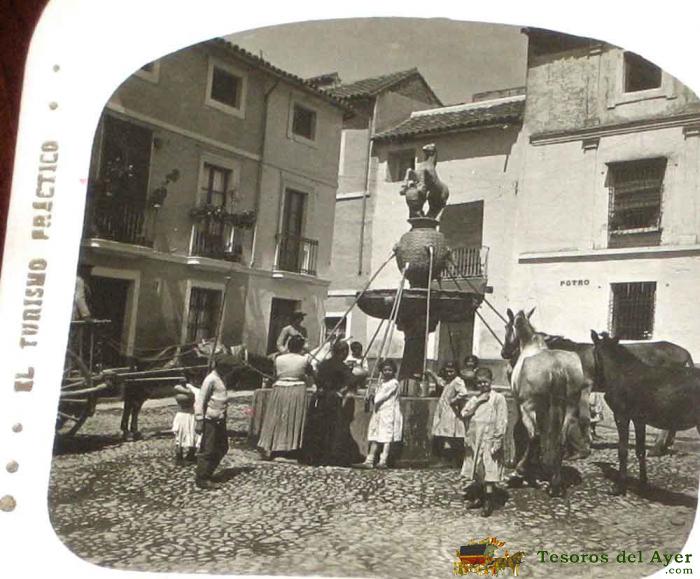 ANTIGUA ESTEREOSCOPIA DE CORDOBA - FUENTE Y PLAZA DEL POTRO - N. 2 - EL TURISMO PRACTICO - VISTAS ESTEREOSCOPICAS DE ESPAÑA - MIDE 16,5 X 8 CMS.