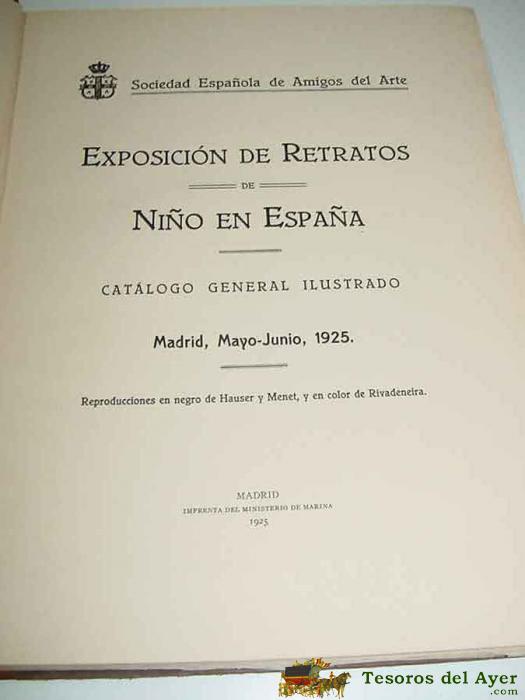 ANTIGUO CATáLOGO DE LA EXPOSICIóN DE RETRATOS DE NIñO EN ESPAñA - CATáLOGO GENERAL ILUSTRADO - MADRID, MAYO-JUNIO 1925 - SOCIEDAD ESPAñOLA AMIGOS DEL ARTE - MINISTERIO DE MARINA - MADRID 1925 - REPRODUCIONES EN NEGRO DE HAUSER Y MENET Y EN COLOR DE RIVADE