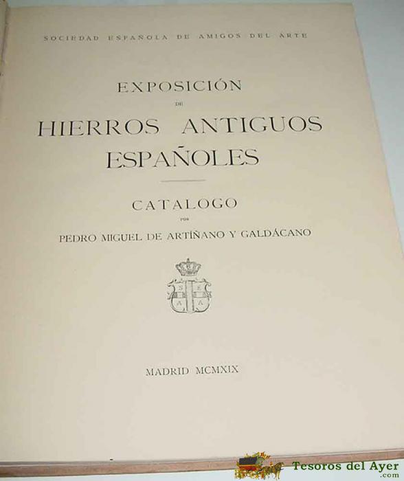 EXPOSICIÓN DE HIERROS ESPAÑOLES - CATÁLOGO - POR: PEDRO MIGUEL DE ARTÍÑANO Y GALDÁCANO - 1919 . MAD. SOCIEDAD ESPAÑOLA DE AMIGOS DEL ARTE. CON 178 PÁG., MUCHAS ILUSTRACIONES, EN FÓLIO MENOR, ( 32 X 25 CM.)TELA, TEJUELO.PROFUSIóN DE LáMINAS EN B/N INTERCAL
