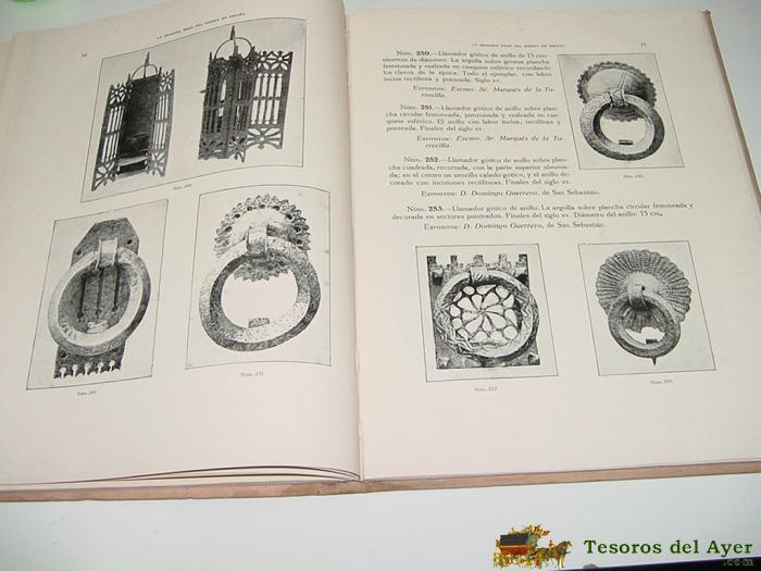 EXPOSICIÓN DE HIERROS ESPAÑOLES - CATÁLOGO - POR: PEDRO MIGUEL DE ARTÍÑANO Y GALDÁCANO - 1919 . MAD. SOCIEDAD ESPAÑOLA DE AMIGOS DEL ARTE. CON 178 PÁG., MUCHAS ILUSTRACIONES, EN FÓLIO MENOR, ( 32 X 25 CM.)TELA, TEJUELO.PROFUSIóN DE LáMINAS EN B/N INTERCALADAS EN EL TEXTO. CATáLOGO. BUEN ESTADO. EXCEPCIONAL LIBRO. LLAMADORES, ALDABAS, TIJERAS, CERRADURAS, LLAVES, ETC. IMPRESIONANTE.