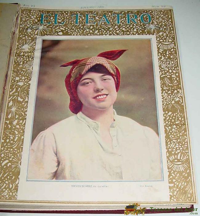 ANTIGUO TOMO DE EL TEATRO 1905 CON 12 REVSTAS ENCUADERNADAS A COLOR, LLEVA DESDE LA DE ENERO DE 1905 A LA DE DICIEMBRE DE 1905, LEVA CADA REVISTA 36 PAGINAS APROXIMADAMENTE, CON INFINIDAD DE FOTOGRAFIAS DEL TEATRO ESPAÑOL DE AQUEL AÑO, PRECIOSA PUBLICACIO