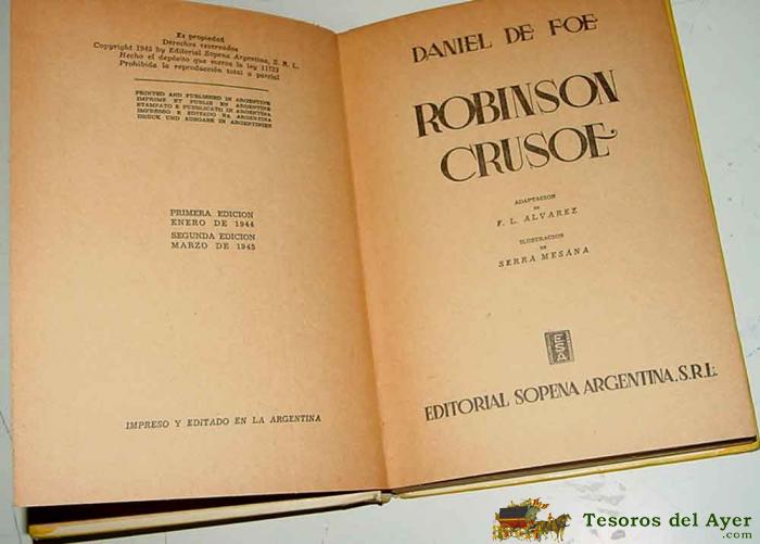 ANTIGUO CUENTO ROBINSON CRUSOE - POR DANIEL DE FOE - ED. SOPENA - AÑO 1945 - MUY ILUSTRADO - COLECCION TOPACIO - 122 PAG.
