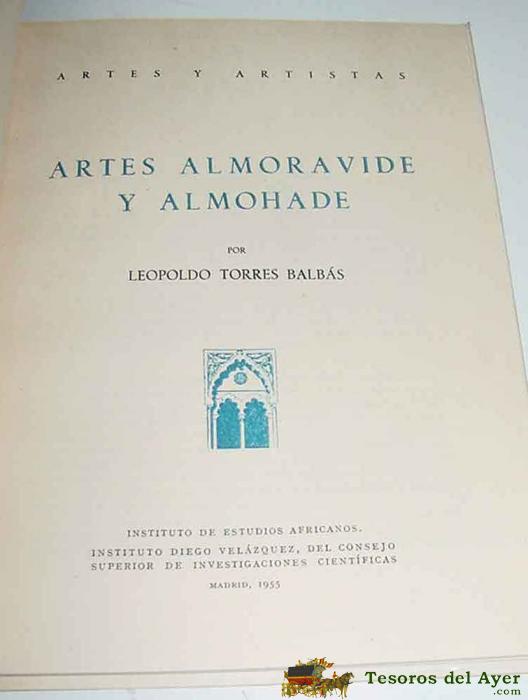 ARTES ALMORAVIDE Y ALMOHADE - LEOPOLDO TORRES BALBáS - MADRID 1955. BLASS, S.A. TIPOGRAFICA. NUñEZ DE BALBOA, 27 MADRID. COLECCION ARTES Y ARTISTAS. INSTITUTO DE ESTUDIOS AFRICANOS. INSTITUTO DIEGO VELAZQUEZ, DEL CONSEJO SUPERIOR DE INVESTIGACIONES CIENTI