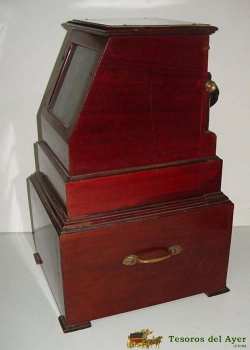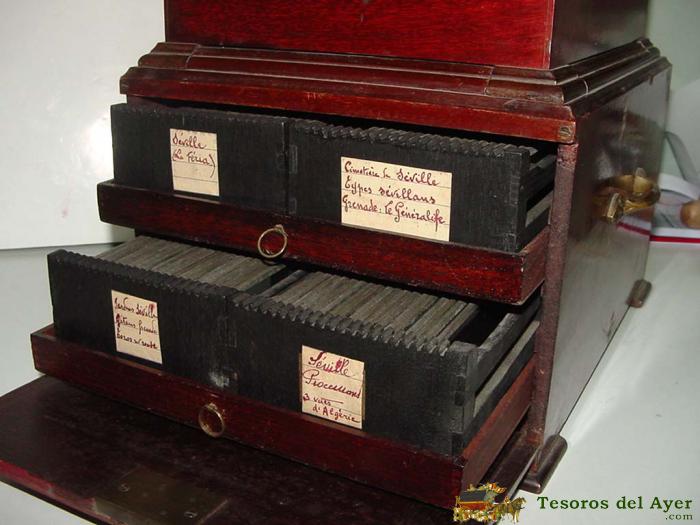 ANTIGUO APARATO VISOR DE FOTOGRAFIAS ESTEREOSCOPICAS - APARATO ESTERESOCOPICO DE MADERA . FINALES SIGLO XIX PRINCIPIOS DEL XX . PLANOX, STEREOSCOPE MAGNETIQUE, MIDE 45 X 30 X 26 CMS. AUTOMATICAMENTE PASA LAS FOTOGRAFIAS ESTEREOSCOPICAS DE CRISTAL CON UN INGENIOSO MECANISMO MAGNETICO, LLEVA 4 CAJAS DE MADERA QUE SE PONEN SOBRE UNOS CARRILES DENTRO DEL APARATO, CADA CAJA LLEVA APROXIMADAMENTE 20 FOTOGRAFIAS DE CRISTAL ESTEREOSCOPICAS, Y A PARTE LLEVA OTRA CAJA DE MADERA DENTRO CON MAS FOTOGRAFIAS, EN TOTAL LLEVA UNAS 95 FOTOGRAFIAS ESTEREOSCOPICAS DE CRISTAL CON TEMA ESPAÑOL, SE UTILIZABAN EN LAS ESCUELAS PARA DAR UNA VISION A LOS NIÑOS DE LAS DIFERENTES REGIONES. REALMENTE EXCEPCIONAL Y BONITA MAQUINA. EN BUEN ESTADO, ORIGINAL Y COMPLETA. LLEVA FOTOGRAFIAS DE LAS PROCESIONES DE SEVILLA, TIPOS SEVILLANOS, EL GENERALIFE, GRANADA, LA FERIA DE SEVILLA, JARDINES DE SEVILLA, GITANOS DE GRANADA, TOROS DE RONDA.