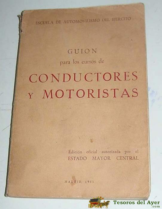 GUION PARA LOS CURSOS DE CONDUCTORES Y MOTORISTAS - MOTO, CARROS DE COMBATE, TRACTORES, COCHES - ESCUELA DE AUTOMOVILISMO DEL EJERCITO - - EDICION OFICIAL AUTORIZADA POR EL ESTADO MAYOR CENTRAL - MADRID 1961 - RUSTICA - MIDE 21 X 14 CMS - 222 PP. MUY ILUSTRADO.