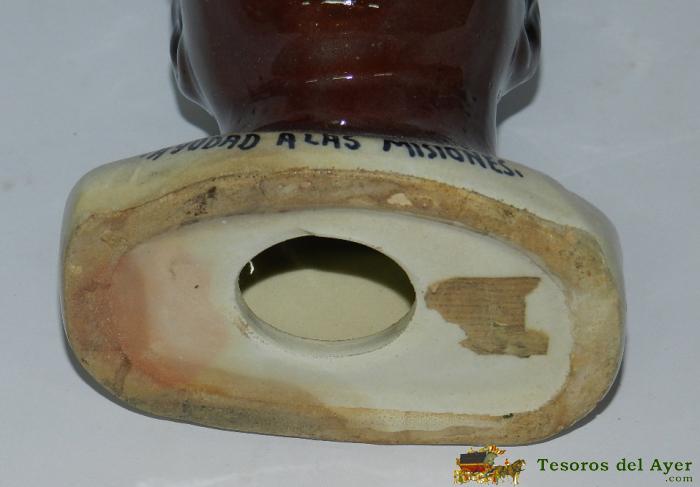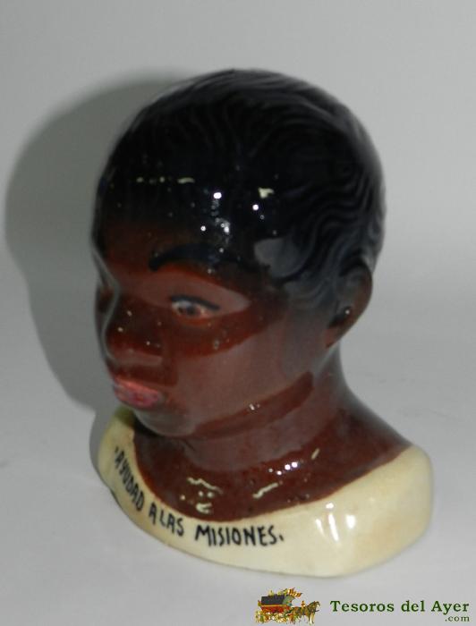 ANTIGUA HUCHA DEL DOMUND DE NEGRITO AÑOS 40 - DE CERAMICA COMPLETAMENTE ORIGINAL, TAL COMO SE VE EN LAS FOTOS - MIDE 17 CMS. DE ALTURA APROXIMADAMENTE - SANTA INFANCIA, AYUDA A LAS MISIONES. SUPER RARA DE ENCONTRAR. POR LO DEMAS ESTA EN EXCELENTE ESTADO DE CONSERVACION.