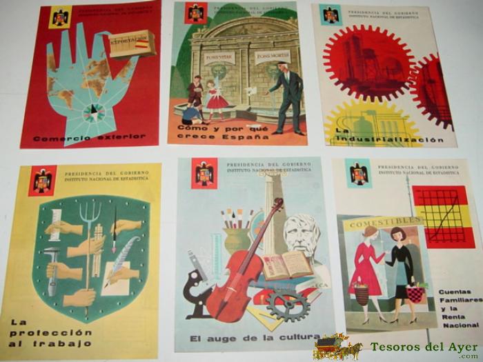 7 FOLLETOS TIPO DIPTICOS DE PUBLICIDAD DE PRESIDENCIA DEL GOBIERNO , INSTITUTO NACIONAL DE ESTADISTICA - AÑOS 50 - DEDICADOS A COMERCIO EXTERIOR, COMO Y POR QUE CRECE ESPAÑA, LA INDUSTRIALIZACION, LA PROTECCION AL TRABAJO, EL AUGE DE LA CULTURA, CUENTAS F