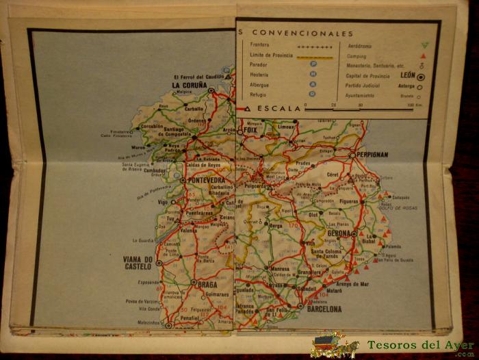 ANTIGUA MAPA TURISTICO DE ESPAÑA Y PORTUGAL - PUBLICIDAD CERVEZAS EL AGUILA - BUEN ESTADO.