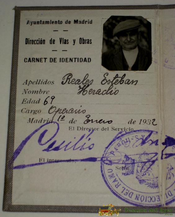 ANTIGUO CARNET DEL AYUNTAMIENTO DE MADRID - REPUBLICA - 1932 - DIRECCION DE VIAS Y OBRAS - DIRECCION DEL RAMO DE PARQUES - MIDE 9,5 X 7,5 CMS.