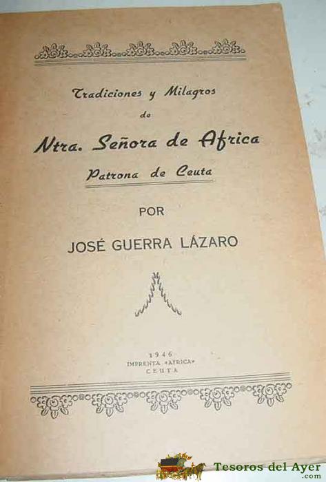 TRADICIONES Y MILAGROS DE NTRA. SRA. DE AFRICA. PATRONA DE CEUTA. GUERRA LAZARO JOSé. RELIGIóN. . 1944. . IMPREN TA AFRICA DE CEUTA. 110 PAG.. 21,5 X 15 CMS. RúSTICA. BUEN ESTADO,
