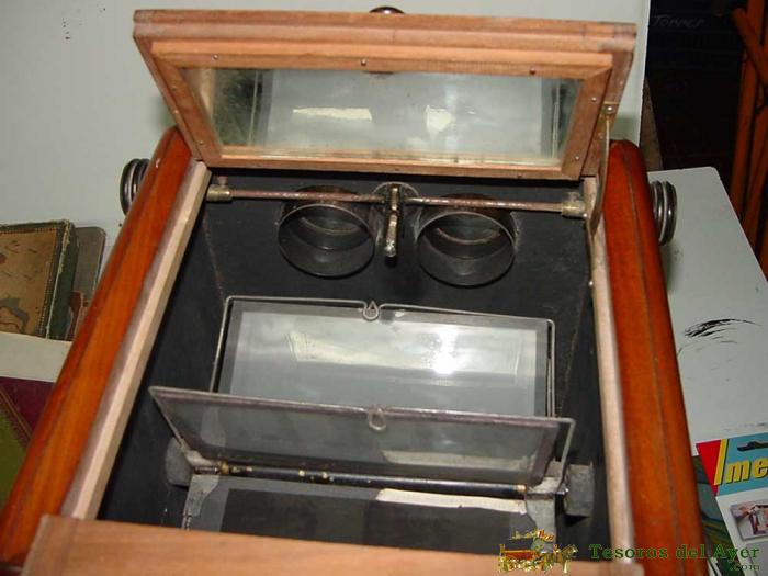 ANTIGUO APARATO ESTEREOSCOPICO, VISOR DE FOTOGRAFIAS ESTEREOSCOPICAS DE CRISTAL - APARATO ESTEREOSCOPICO DE MADERA . SIGLO XIX PRINCIPIOS DEL XX . STEREOSCOPE PHOTOS, MIDE 43 X 25 X 24 CMS. AUTOMATICAMENTE PASA LAS FOTOGRAFIAS ESTEREOSCOPICAS DE CRISTAL D