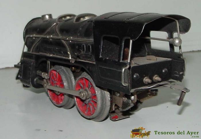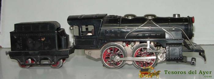 ANTIGUA LOCOMOTORA ESCALA O DE PAYA MODELO 987, CON SU TENDER DE CARBON, BUEN ESTADO DE CONSERVACION - TAL COMO SE VE EN LAS FOTOGRAFIAS, MIDE TODO EL CONJUNTO 33 CMS. DE LONGITUD - VER TODAS LAS FOTOGRAFIAS QUE HEMOS PUESTO - TREN -