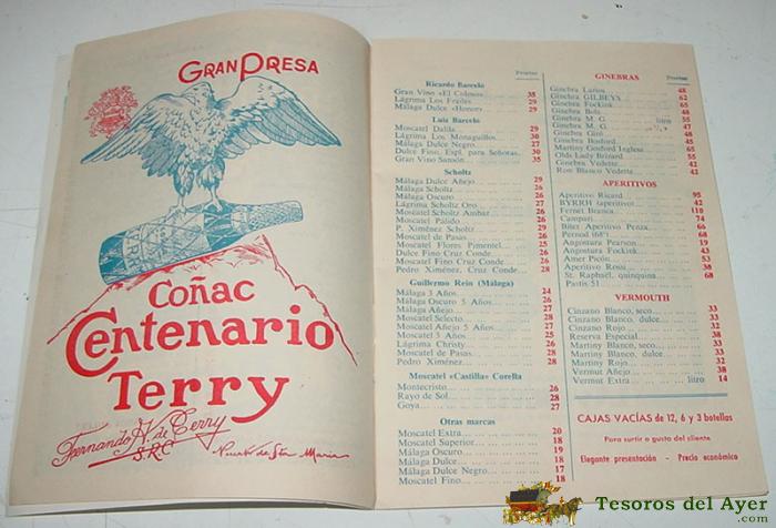 ANTIGUO CATALOGO DE ALMACEN DE VINOS Y LICORES MARCIANO SANCHEZ - CON LISTA DE PRECIOS, ANUNCIOS PUBLICITARIOS DE CHOCOLATES EL BARCO, LA MOLINERA, TURRON EL ALMENDRO, COÑAC CENTENARIO TERRY, BRANDY SOBERANO GONZALEZ BYASS, ETC... - 36 PAG - MIDE 21 X 15