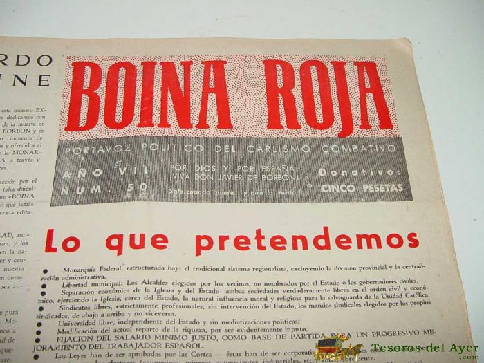 BOINA ROJA,PORTAVOZ POLITICO DEL CARLISMO COMBATIVO. Nº 50 DEL 19-7-1959 - TIENE 8 PAGINAS Y MIDE 44 X 32 CMS.