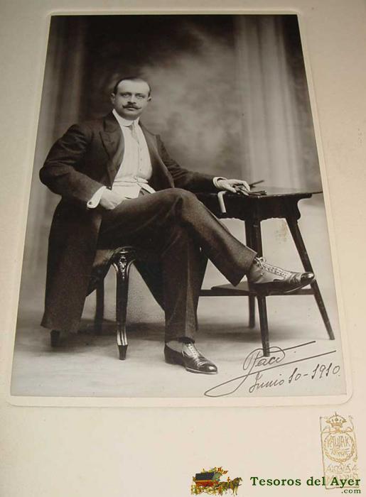 ANTIGUA FOTOGRAFIA ARTISTICA DE KAULAK, CALLE ALCALA E DE MADRID - CABALLERO POSANDO, MIDE 32 X 20,5 CMS. INCLUIDO EL PASSE PAR TOUT.