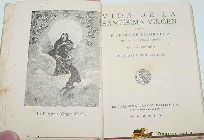 ANTIGUO LIBRO VIDA DE LA SANTISIMA VIRGEN - POR EL P. PEDRO DE RIVADENEIRA DE LA COMPAÑIA DE JESUS - NUEVA EDICION ILUSTRADA CON LAMINAS - ED. SATURNINO CALLEJA - BIBLIOTECA DE RECRO XII - 94 PAG. - MIDE 10 X 8 CMS.