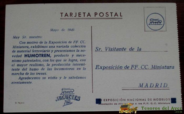 ANTIGUA POSTAL CON PUBLICIDAD DE JUGUETES PAYA RAI (IBI) ALICANTE 1949 - TREN PAYA LOCOMOTORA - CON MOTIVO DE LA EXPOSICION NACIONAL DE MODELOS, FERROCARRILES EN MINIATURA - LOCOMOTORA SANTA FE DE LA RENFE CONSTRUIDA POR LA MAQUINISTA TERRESTRE Y MARITIMA - MIDE 14,5 X 9 CMS. EXCELENTE ESTADO DE CONSERVACION. VER LA OTRA FOTO PUESTA.