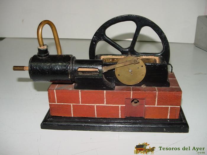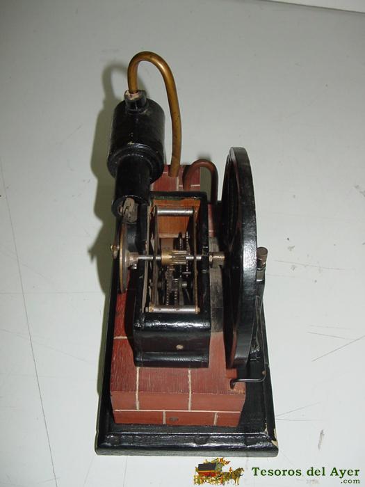 ANTIGUO JUGUETE A CUERDA, CONSISTENTE EN UNA MAQUINA DE VAPOR (IMITACION) QUE ERA CONSTRUIDA POR LOS NIÑOS EN LOS AÑOS 20, FUNCIONA A CUERDA, ES DE MADERA Y LLEVA SU PISTON QUE SE MUEVE, ASI COMO LA RUEDA GRANDE, MIDE 25 X 16 X 11 CMS. MUY RARO Y PRECIOSO, CON TODA PROBABILIDAD ES ALEMAN.