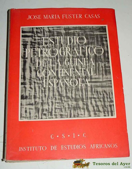 ANTIGUO LIBRO ESTUDIO PETROGRAFICO DE LA GUINEA CONTINENTAL ESPAÑOLA - POR FUSTER CASAS, J. MARIA - MADRID 1951 CSIC, 1951. IN 4º M, CARTONé, 355 PP + 276 FOT + 5 MAPAS A COLOR (1 DE ELLOS DEESPLEGABLE). PUBLICACION DEL INSTITUTO DE ESTUDIOS AFRICANOS.