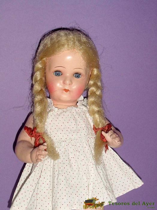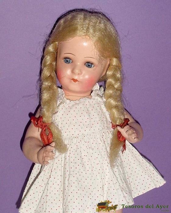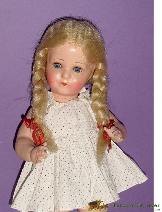 MUY GUAPA MUÑECA ANTIGUA DE LOS AÑOS 40- CABEZA DE CELULOIDE- PELO DE CREPÉ, OJO DE CRISTAL, CUERPO DE COMPOSICIÓN.