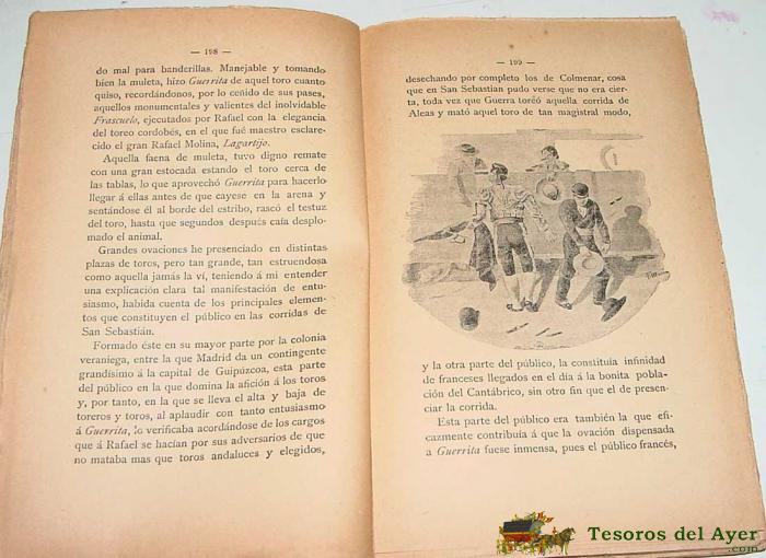 ANTIGUO LIBRO GUERRITA - SU TIEMPO Y SU RETIRADA. (1899) - TOROS, TAUROMAQUIA, POR LADISLAO REDONDO. IMPRENSOR R. VELASCO, MADRID, 1899. 311 PáGINAS. - MIDE 18,5X12 CM. - ILUSTRADO CON RETRATOS DE TOREROS, PEQUEñOS DIBUJOS Y CAPITULARES. MUY RARO.