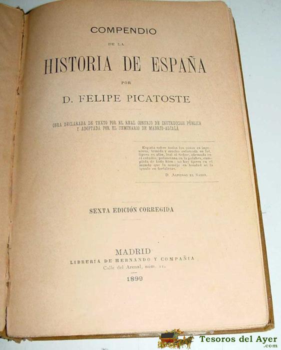 HISTORIA DE ESPAÑA - POR FELIPE PICATOSTE - AÑO 1899 - BUEN ESTADO. 328 PAG. - MIDE 18,5 X 12 CMS.