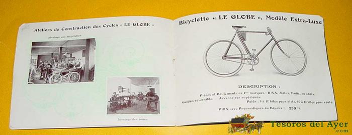 ANTIGUO CATALOGO DE BICICLETAS - CYCLES LE GLOBE - PARIS - 12 PAG. CON CARACTERISTICAS Y PRECIOS - EN FRANCES - MIDE 16 X 11 CMS.
