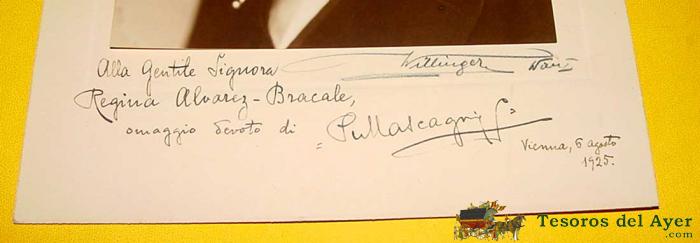 ANTIGUA FOTOGRAFIA ORIGINAL DEL MUSICO PIETRO MASCAGNI - OPERA - CON DEDICATORIA Y FIRMA MANUSCRITA DIRIGIDA A REGINA ALVAREZ EN VIENA EL 6 DE AGOSTO 1925, DURANTE SU LARGA GIRA POR ALEMANIA, AUSTRIA, CHECOSLOVAQUIA,POLONIA, BéLGICA Y EGIPTO - FOTO WILLINGER - MIDE 32 X 22 CMS, INCLUIDO EL PASPARTOUT - REALMENTE EXCEPCIONAL, PIEZA DE MUSEO.