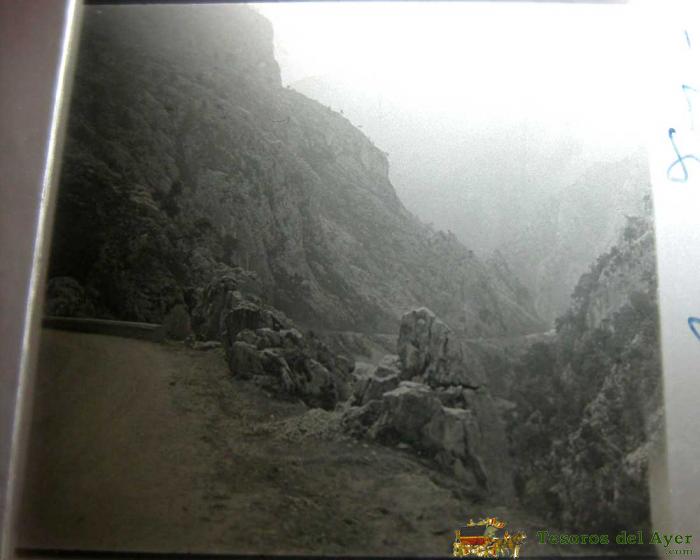 ANTIGUA FOTOGRAFIA ESTEREOSCOPICA DE COVADONGA - ASTURIAS - EN CRISTAL - CARRETERA DE LOS LAGOS - MIDE 10,7 X 4,4 CMS