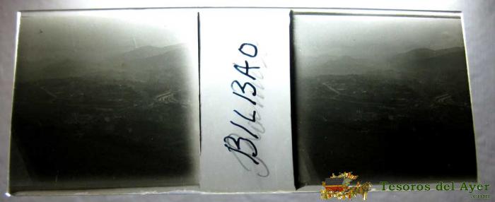 ANTIGUA FOTOGRAFIA ESTEREOSCOPICA DE PANORAMICA DE BILBAO - EN CRISTAL - MIDE 10,7 X 4,4 CMS.