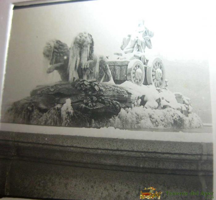 ANTIGUA FOTOGRAFIA ESTEREOSCOPICA DE MADRID - CIBELES HELADA - EN CRISTAL - MIDE 10,7 X 4,4 CMS.