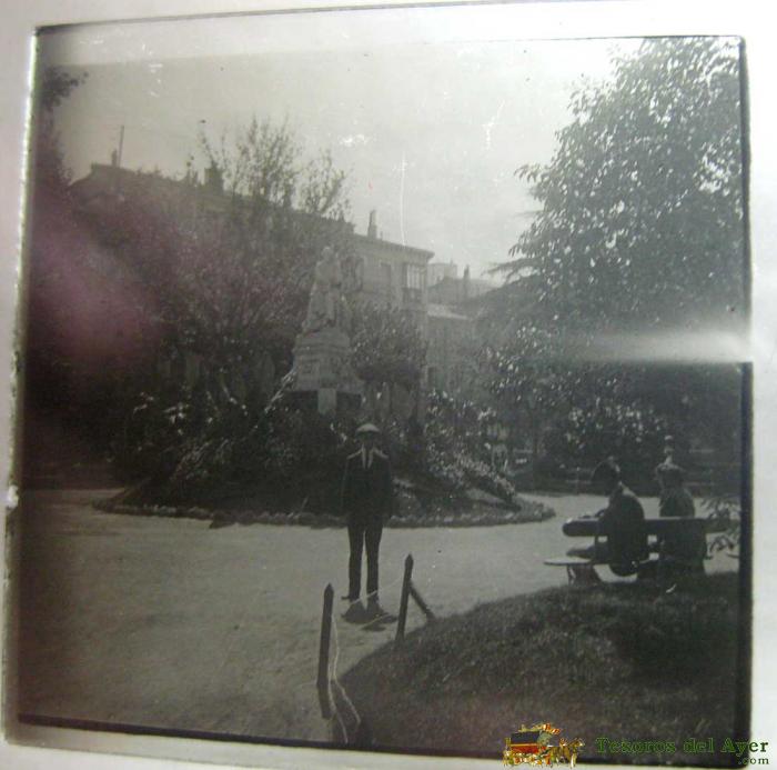 ANTIGUA FOTOGRAFIA ESTEREOSCOPICA DE UNA PLAZA DE MADRID - EN CRISTAL - MIDE 10,7 X 4,4 CMS.