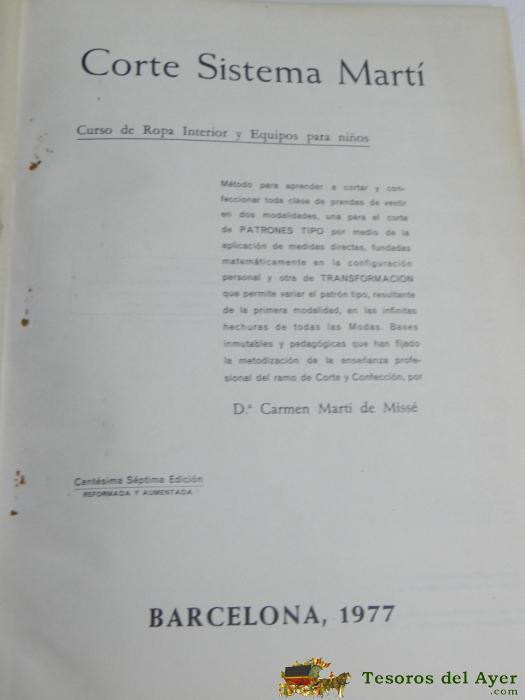 ANTIGUO LIBRO CORTE SISTEMA MARTI - LENCERIA - BARCELONA 1977 - TRANSFORMACION, COMBINACIONES Y ENAGUAS, ROPA INTERIOR SEÑORA, BATAS, , CAMISAS DE NOCHE, ETC.. MODA - 103 PAG - MIDE 30,5 X 22 CMS.