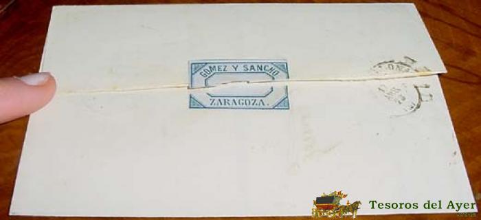 SOBRE CIRCULADO - ESPAÑA. .10 CTS. . , MAT. ZARAGOZA 1873 - MUY RARO CON FECHADOR. MAGNÍFICA. A BARCELONA - HISTORIA POSTAL