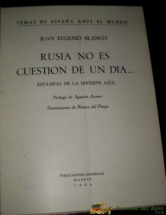 RUSIA ES CUESTIóN DE UN DIA - POR JUAN EUGENIO BLANCO - ESTAMPAS DE LA DIVISIóN AZUL - PRóLOGO DE AGUSTíN AZNAR, ILUSTRACIONES DE BLANCO DEL PUEYO - PUBLICACIONES ESPAñOLAS -MADRID 1954 - 74 PAG.